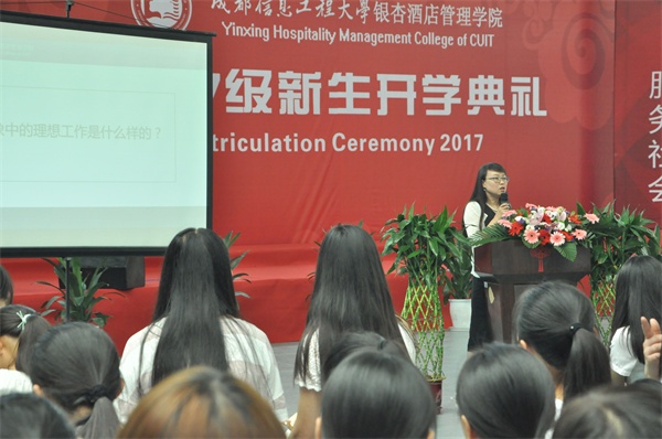2017年9月8日在体育馆开展了财务管理系开学典礼和行业专家讲座,首先是办公室主任李菲老师致辞,她主要从学生应该独立、坚强、富有等几个方面鼓励新生应该在大学生活里面,独立自主,学会自己做事,在生活,学习等多方面,学会自我安排,自我成长,在遇到困难时,坚强面对,要在精神层次上获得富有。